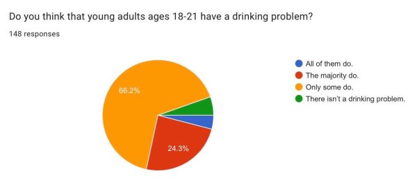 According to an MHS Media poll of 148 Marist students, 66.2% responded that few young adults, 18 – 21, have a drinking problem, 24.3% say that the majority do, while 5.4% state that there isn’t a drinking problem at this age.